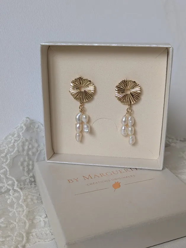 Fabriquées en plaqué or, ces boucles d’oreilles arborent de délicates perles d’eau douce, offrant un éclat naturel et une beauté intemporelle.