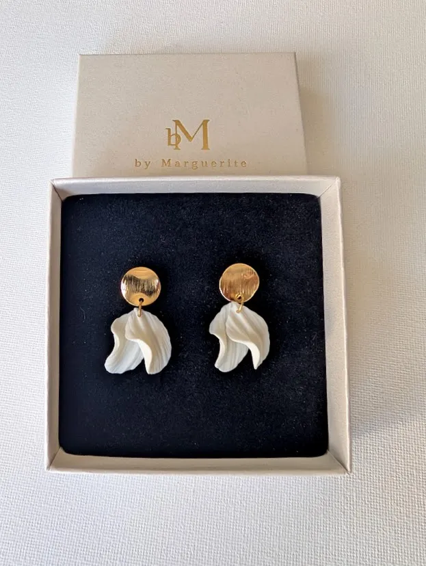 Découvrez les boucles d’oreilles CHLOE en plaqué or 18k brossé, ornées de délicats pétales en porcelaine. Ces bijoux uniques sont parfaits pour toutes les occasions, qu’il s’agisse d’un mariage élégant ou d’une journée ordinaire où vous souhaitez ajouter une touche de féminité à votre tenue.