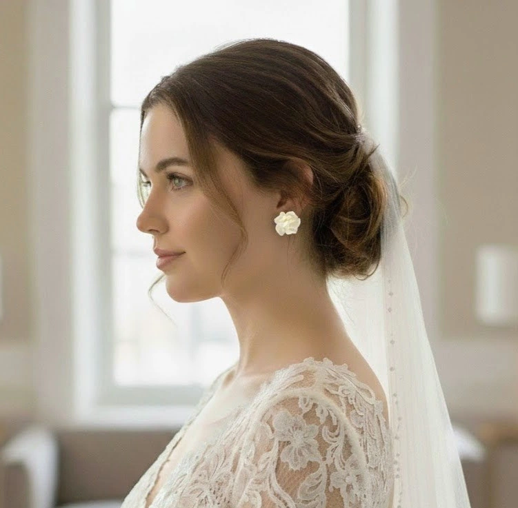 Ce bijou se porte aussi bien en boucle d’oreille de mariée, pour souligner une allure romantique, qu’au quotidien, pour apporter une note délicate et intemporelle à votre style.