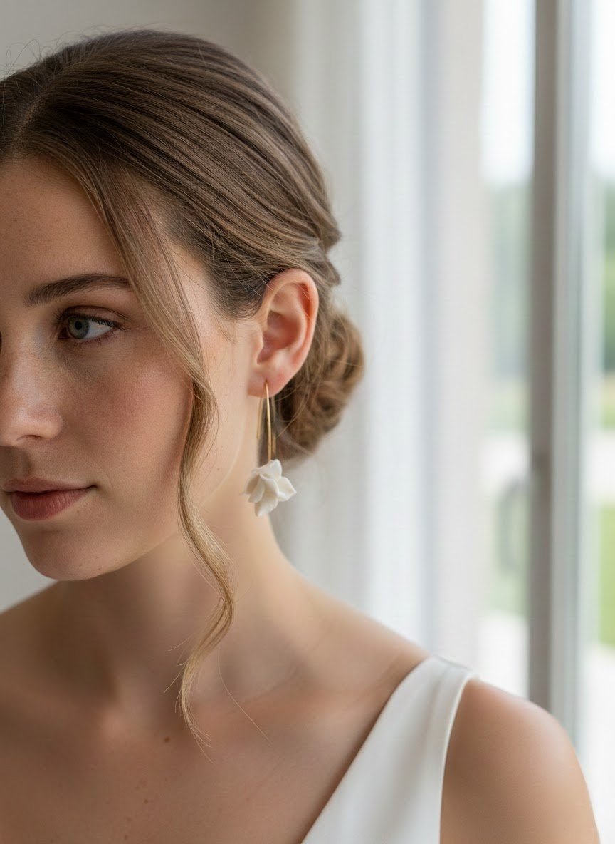 Ces boucles d’oreilles ont été pensées pour la mariée moderne qui privilégie l’authenticité et le design.